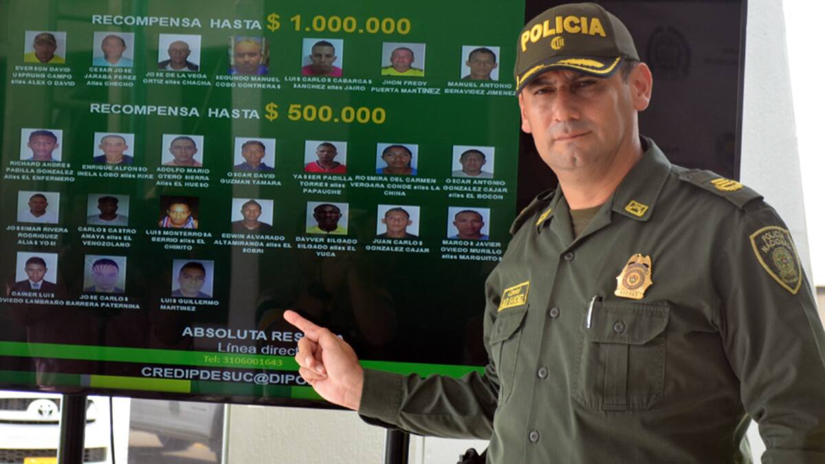 El coronel Julio César Sánchez Molina, comandante de la Policía Nacional en el departamento de Sucre, dio a conocer el cartel con los delincuentes más buscados de la región.