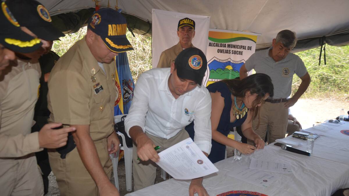El acto protocolario de entrega se llevó a cabo en la vereda El Palmar, en Ovejas, una de las comunidades beneficiadas. Contó con la presencia de funcionarios de la Gobernación de Sucre, las alcaldías de estos municipios, de la Alta Consejería para la Paz, la Armada y la población civil.