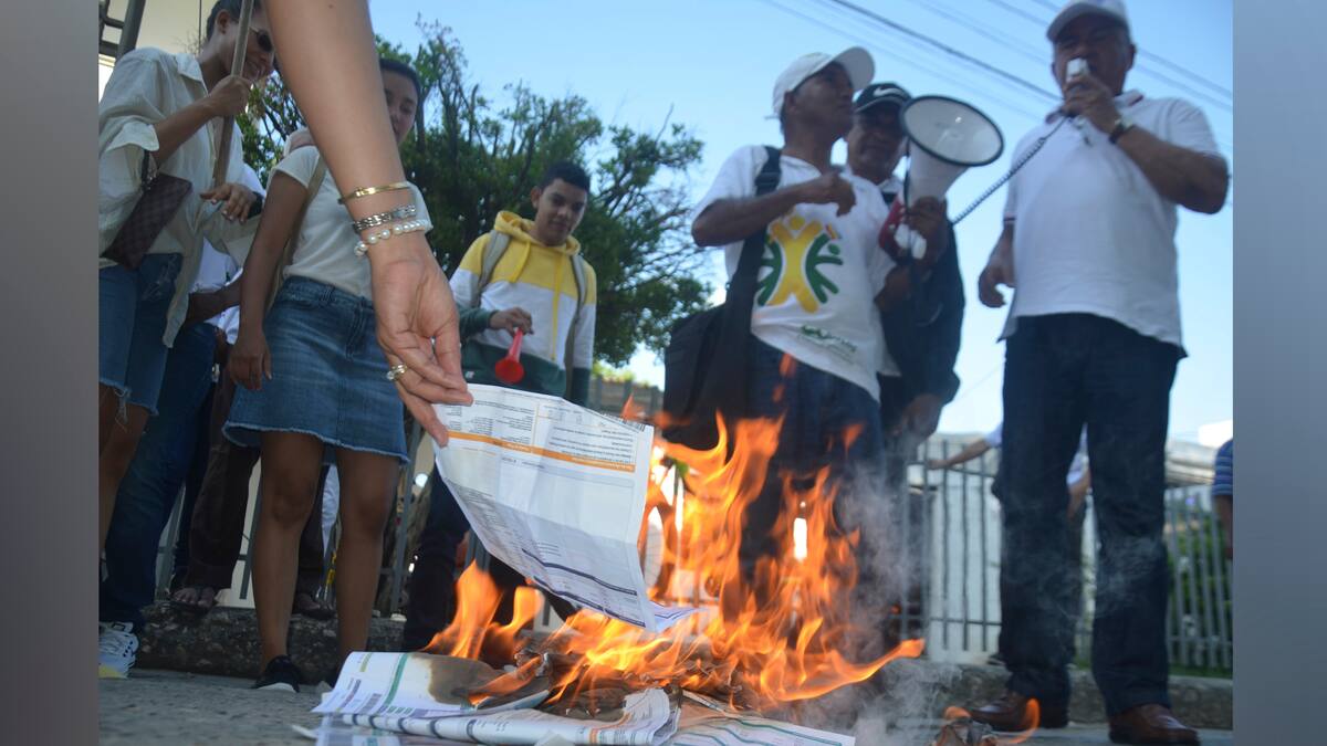 Habitantes de la comuna 7 en Sincelejo hicieron la denominada 'quematón de los recibos' frente a las oficinas centrales de la empresa Electricaribe. Marcharon varias cuadras con megáfono en mano y luego quemaron las facturas de energía en señal de protesta por la, según el calificativo de ellos, 'mala prestación del servicio de energía y la alta tarifa que les están cobrando'.