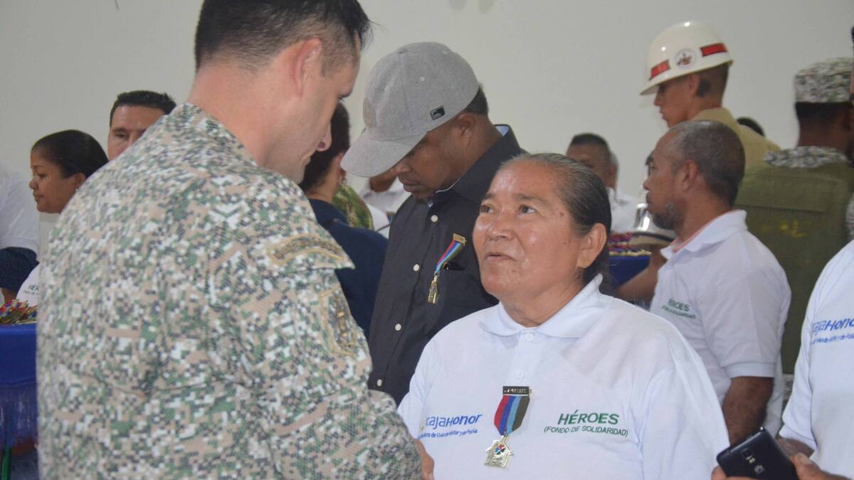 'Dios los bendiga y acompañe siempre', deseó la mujer, en medio del llanto mientras recibía una medalla de manos de oficiales de Caja Honor quien lidera la campaña.