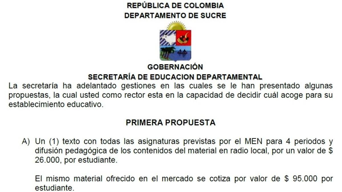 La circular 057 que el secretario de Educación de Sucre, Francisco Sierra Paternina, le envió al gremio para dar a conocer el reinicio de las clases en medio de la pandemia ha sido cuestionada por las directivas de la Asociación de Educadores de Sucre (Ades) porque a su juicio, a través de esta se está incitando a contratar unos servicios con unas firmas que él propone.