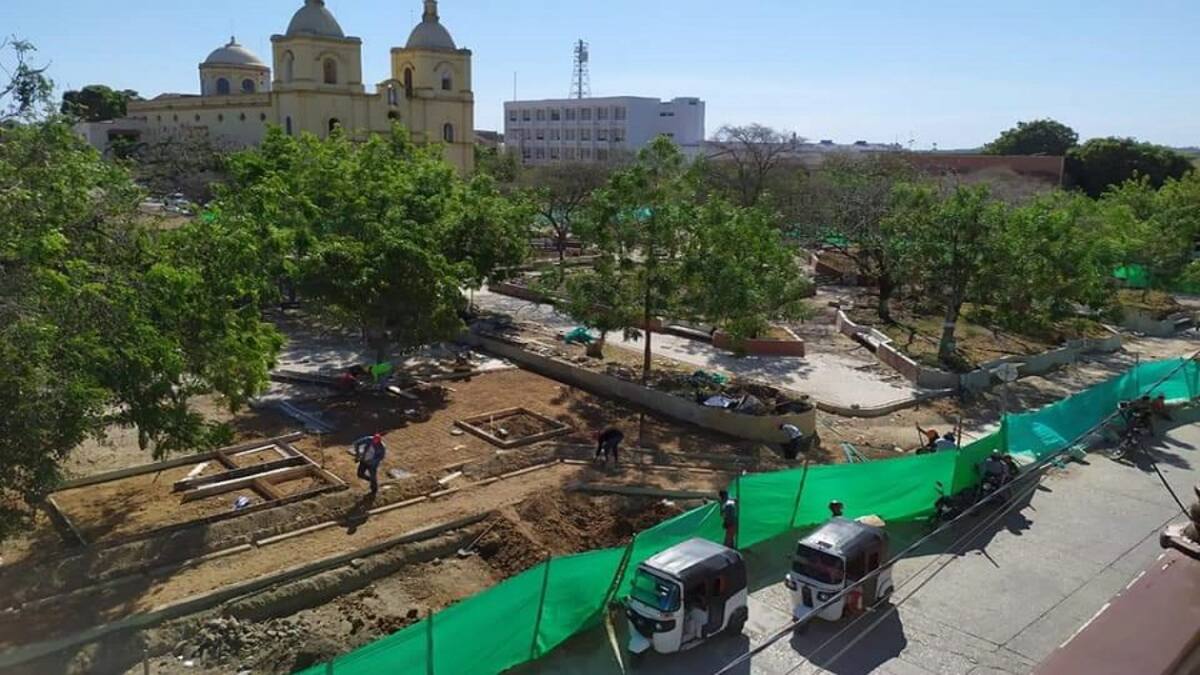 La inconclusa remodelación del parque de Corozal es una de las obras cuestionadas.