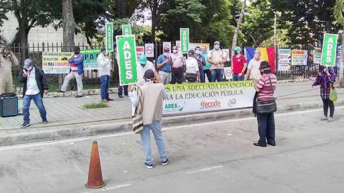 El presidente de la Asociación de Educadores de Sucre (Ades), Ubaldo Corrales, se plantó en la mañana de este jueves en las afueras de la Gobernación con varios de los agremiados y de la Central Unitaria de Trabajadores (CUT) para hacerle saber al gobierno de Sucre y al del nivel nacional que no van a regresar a las aulas de clases hasta que no existan todos los protocolos de bioseguridad que ellos les deben garantizar.