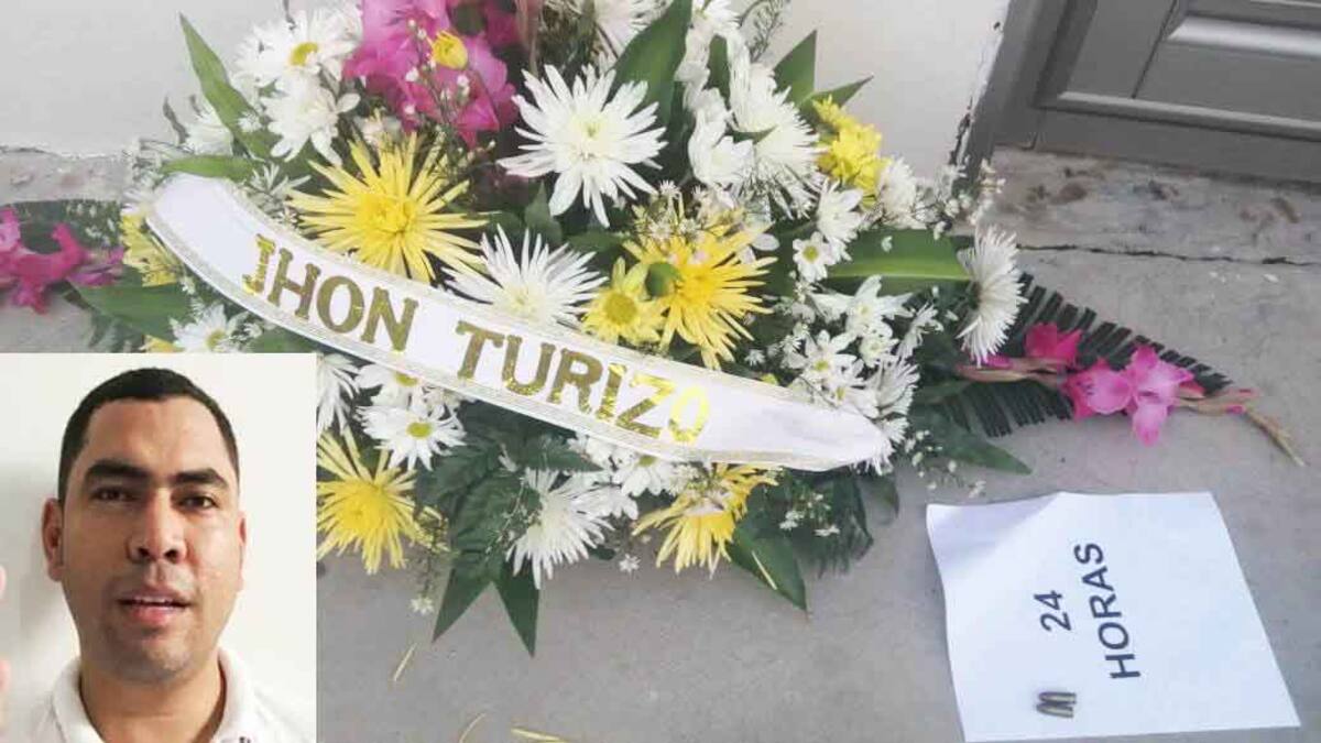 Un ramo fúnebre, dos balas y una hoja blanca con el mensaje de 24 horas hacen parte de esta amenaza, la segunda que recibe en 4 meses, y que le llegó a la casa en la que habita con su esposa y sus tres hijos, mientras que la primera fue a través de redes sociales.