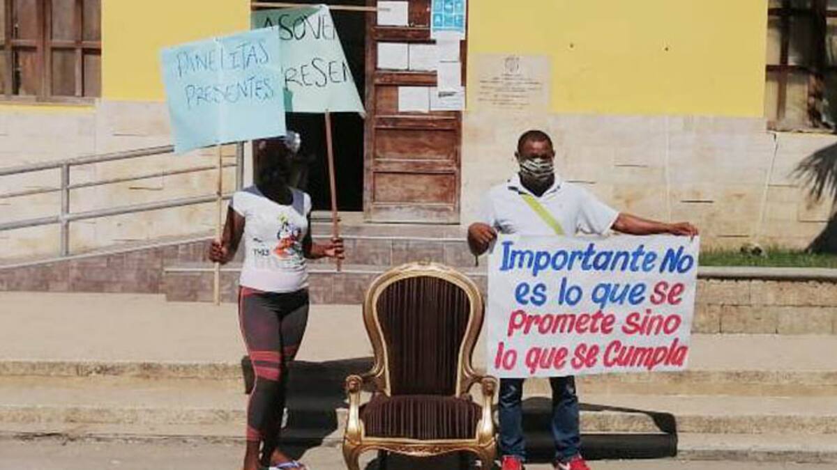Los que protestaron llevaron pancartas y una de ellas decía 'lo importante no es prometer sino cumplir' y con ello de viva voz expresaban que el ahora alcalde los había engañado porque les supo llegar en campaña 'aprovechando su labor de párroco, pero ahora le falta humildad'.