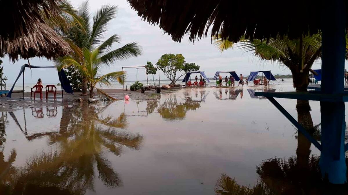 El Comité Municipal para la Gestión del Riesgo de Desastres monitorea minuto a minuto la situación y reportó que en las últimas horas el oleaje ha sobrepasado la franja de playas por lo que se presentan represamientos de agua e inundaciones en las vías de acceso al sector turístico.