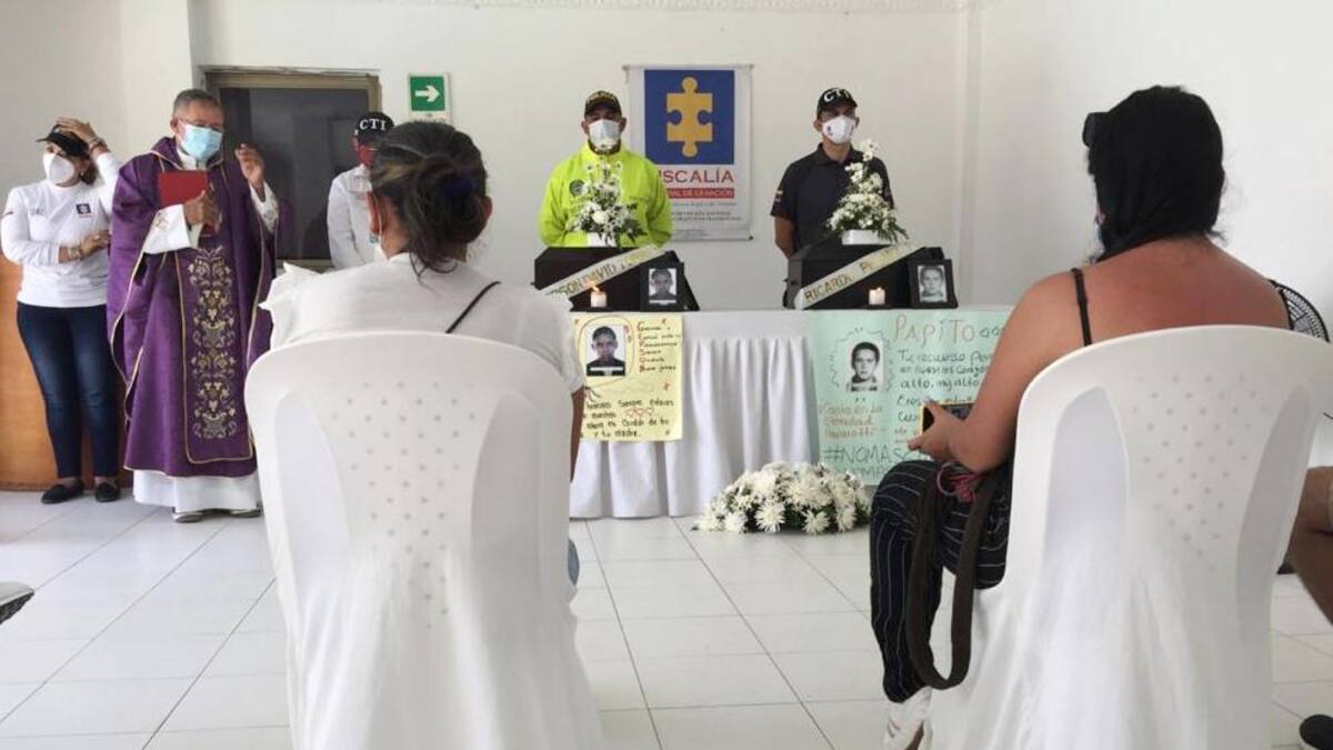 La ceremonia de entrega se cumplió el fin de semana en el salón de un hotel de esa población y la presidió el personal que integra el Grupo Interno de Trabajo de Búsqueda, Identificación y Entrega de personas desaparecidas (Grube) de la Fiscalía General de la Nación, el mismo que desde el jueves anterior adelanta labores de exhumación, así como de toma de muestras y testimonios de familiares de personas desaparecidas.