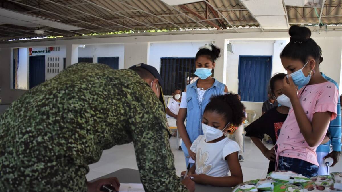 Llevan tres meses interviniendo la zona, pero desde el lunes 26 y hasta este sábado 31 afianzaron las atenciones sociales de las que la Institución Educativa Técnica Agropecuaria se benefició porque un grupo de soldados con apoyo de la comunidad pintó las aulas, cambió algunos techos, colocaron nuevas baterías sanitarias, realizaron trabajos de mantenimiento a los baños y labores de limpieza y embellecimiento general, lo que permitirá un regreso seguro a las aulas desde este lunes.