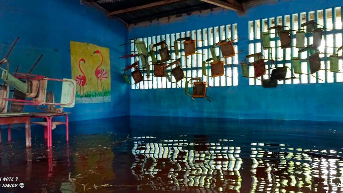 De las graves inundaciones que se registran en las subregiones Mojana y San Jorge, al sur del departamento de Sucre, no escapan las instituciones educativas y sus respectivas sedes, lo que hoy tiene a muchos estudiantes sin recibir clases.