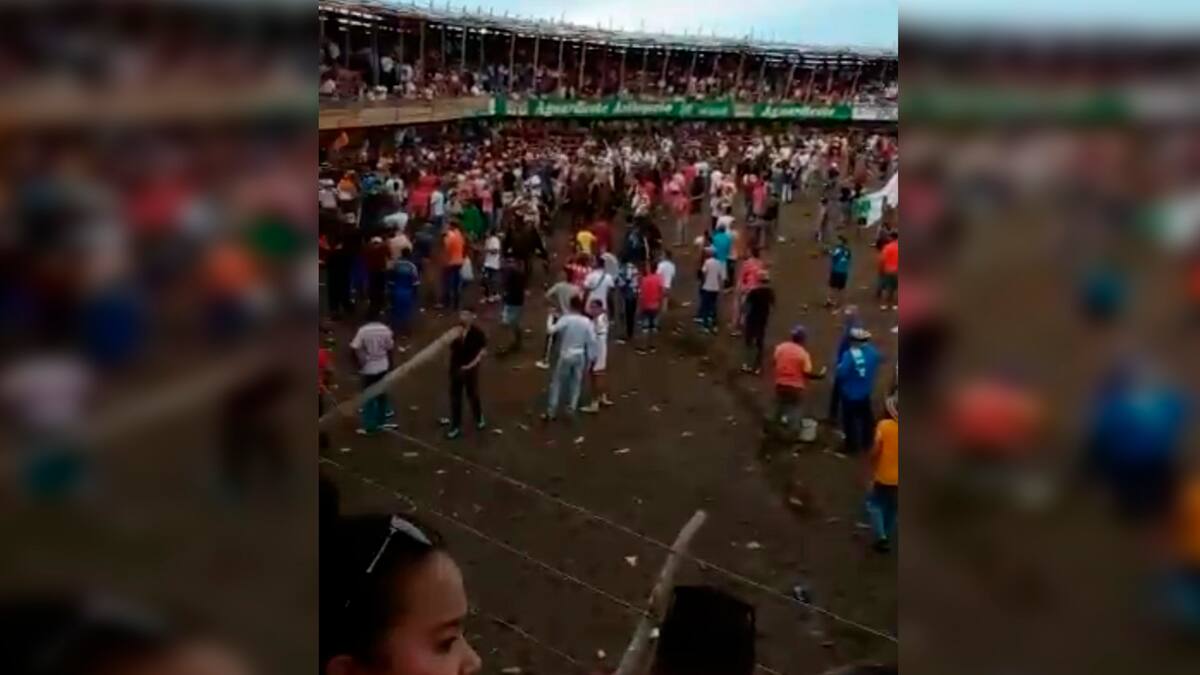 El terreno, por el alto nivel freático, empezó a ceder y con ello los palcos que estaban atiborrados de espectadores por lo que muchos de estos empezaron a bajarse rápidamente, al tiempo que el personal de la Policía Nacional y los Bomberos Voluntarios de Corozal iniciaron la evacuación.