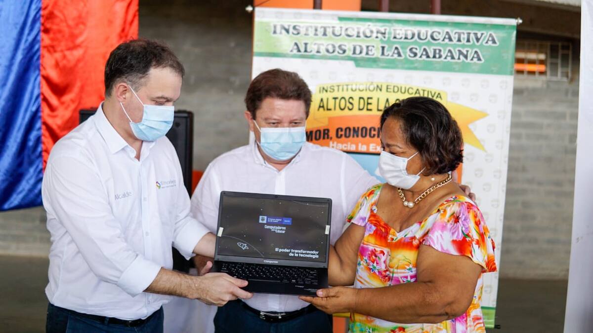 'En una gran alianza revolucionaria entre el Ministerio de las Tic y la Alcaldía de Sincelejo logramos entregar 3 mil equipos de cómputo en el 2021 que van a beneficiar a más de 24 mil estudiantes. Esto es disminuir la brecha que existía cuando llegamos a la administración', sostuvo el alcalde Andrés Gómez Martínez.