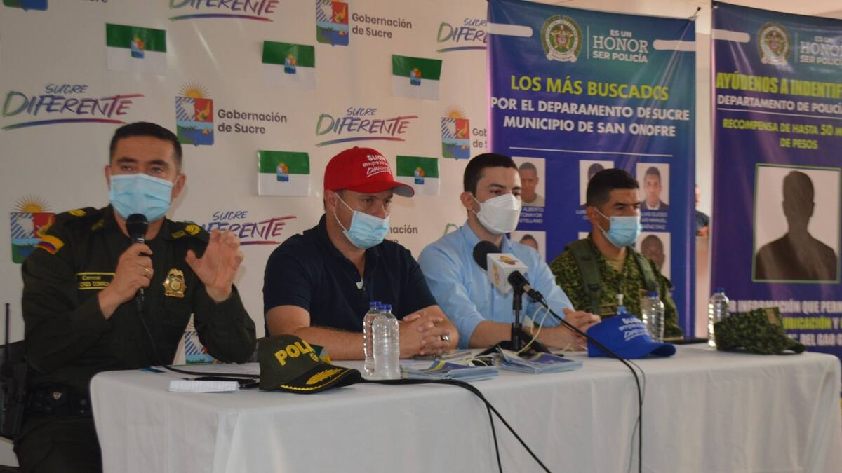 Las autoridades también ratificaron la recompensa de hasta 50 millones de pesos por información que permita la identificación y ubicación de alias ‘el Paisa’ que sería el jefe del Clan en San Onofre y lo relacionan con la ocurrencia de varios homicidios en esa población.