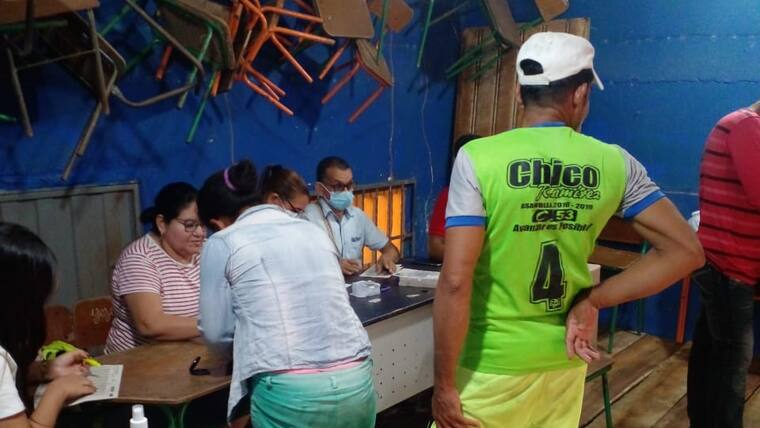 En esta oportunidad y tras haber sido mejorado el tambo de madera dentro del colegio para instalar la mesa de votación, los habitantes de esta parte de la Mojana llegaron en las embarcaciones a la puerta del colegio, que tiene una abertura de un metro y 20 centímetros. Allí los recibieron y despidieron los miembros de la Policía Nacional que, al igual que los habitantes de esta zona, afrontan las afectaciones de las inundaciones.