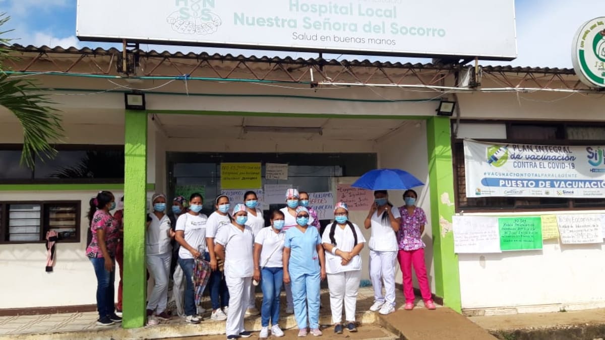Alrededor de 20 empleados de OPS que prestan sus servicios en el Hospital Local Nuestra Señora del Socorro del municipio de Sincé madrugaron este miércoles a protestar.