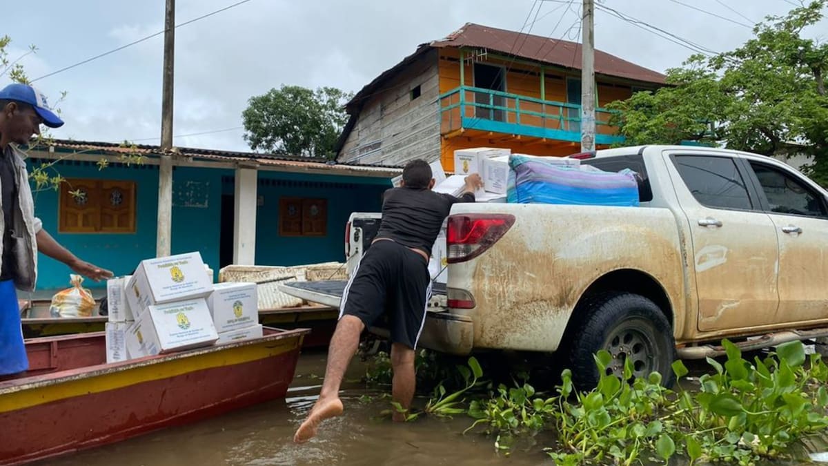 Los primeros alimentos, kits de cocina y frazadas que recolectó la Gobernación de Sucre entre sus trabajadores fueron llevados a 150 familias que habitan entre las aguas en el corregimiento El Limón, en el municipio de San Benito, subregión de la Mojana sucreña.