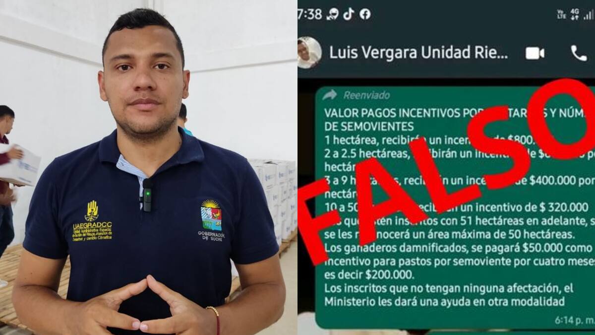 La Gobernación de Sucre a través de la Unidad Administrativa Especial para la Gestión del Riesgo, Atención de Desastres y Cambio Climático, alerta sobre información falsa que circula en redes sociales y que se relaciona con los montos de los subsidios que el Gobierno Nacional (Ministerio de Agricultura) le entregará a los ganaderos y agricultores de la Mojana que están afectados por la ola invernal de finales de 2021 y que a la fecha no se reponen.