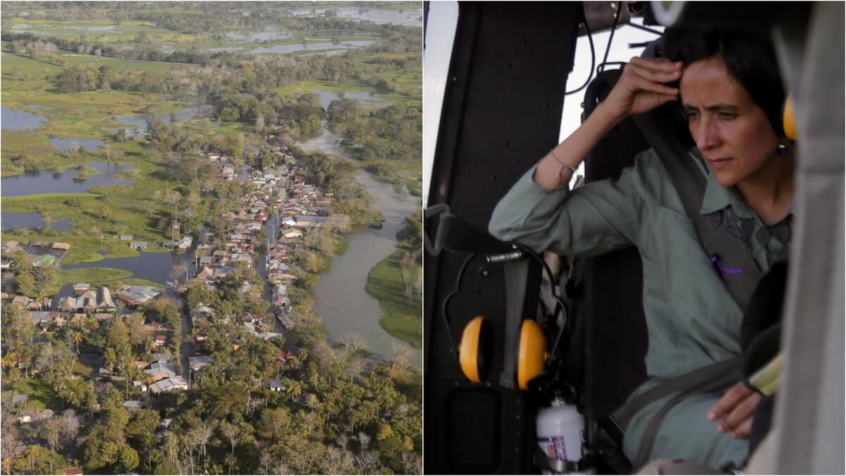 La ministra de Ambiente, Susana Muhamad, sobrevoló la tarde de este viernes 25 de noviembre la gran región de la Mojana y verificó la magnitud de la tragedia que se vive en esta zona del país donde 'convergen tres colosos ríos: Magdalena, Cauca y San Jorge', como ella lo catalogó.