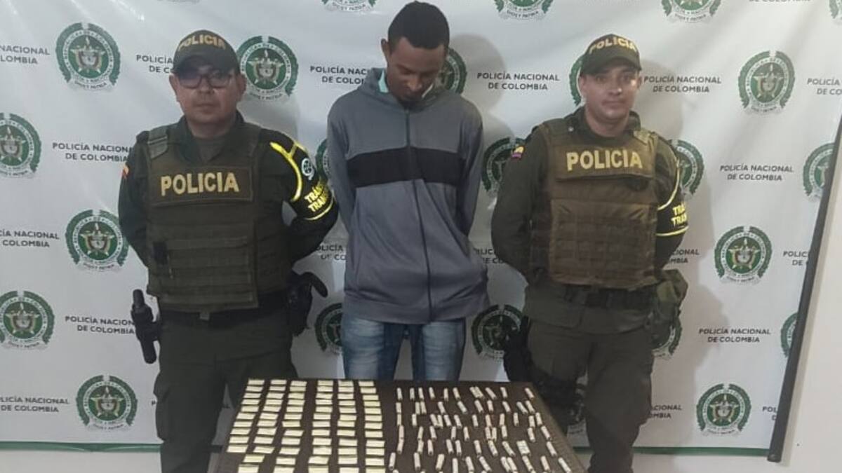 En un puesto de control de este tramo que une a Sucre con Bolívar Hernández Benítez fue sometido a una requisa y en desarrollo de esta le hallaron en su poder 75 papeletas plásticas que contenían base de coca con un peso de 101 gramos y 75 dosis más de marihuana envueltas como un cigarrillo y con un peso de 141 gramos.