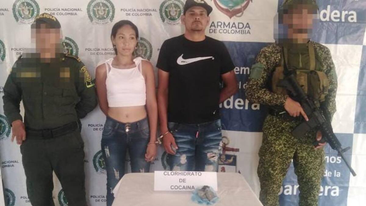 Los detenidos, Yulieth Paola Benavides Pérez, de 28 años, y Héctor José Peña Rivero, de 40, fueron ubicados en el corregimiento de Pichilín tras hallarles en su poder una bolsa plástica transparente en la que llevaban 94 gramos de cocaína avaluados en la suma de 500 mil pesos.