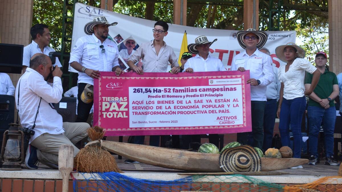La Sociedad de Activos Especiales (SAE) culminó este sábado en Sucre la primera fase de entrega provisional de predios a las comunidades campesinas que las harán producir para su sustento y para garantizar la seguridad alimentaria.