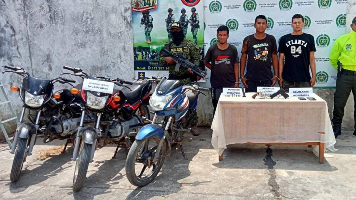 De hecho, al momento de la aprehensión que ocurrió en zona rural de Sincé mediante diligencias de allanamiento y registro, las unidades de la Sijin y Gaula Militar les hallaron en su poder 2 armas de fuego, 6 cartuchos de calibres 38 y 9 mm, 2 celulares y 3 motocicletas.