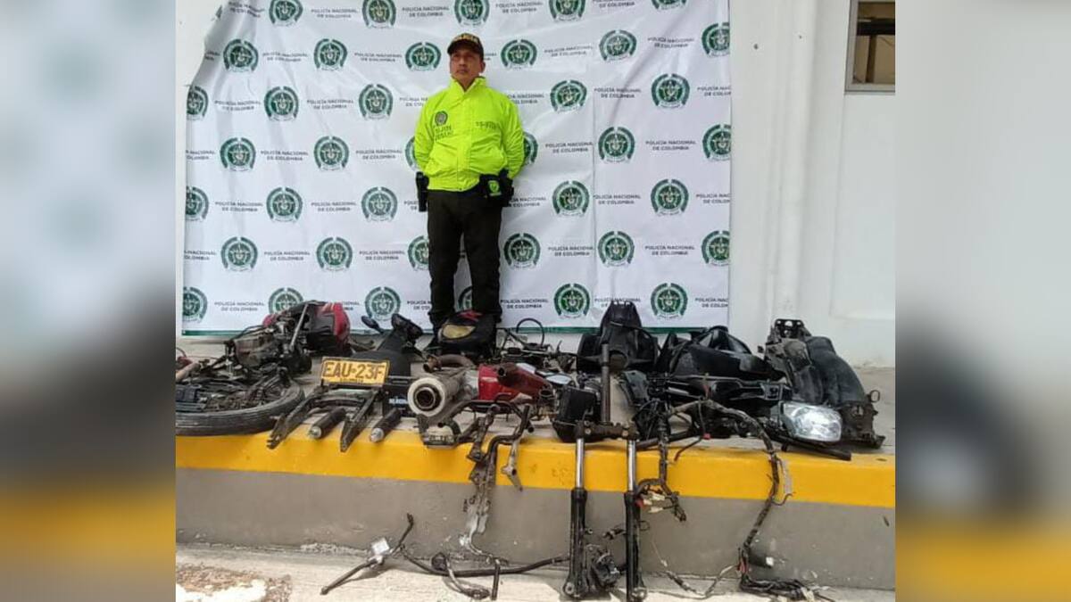 Entre los elementos recuperado están 2 tanques de colores negro y rojo para gasolina de moto TVS, 2 parrillas de motos, un tapa cadenas, la placa de moto EAU-23F, una llanta con ring, 3 mofles, una tijera de moto, un motor de motocicleta, un sillín, un tacómetro, una farola, 2 tapas laterales, 2 amortiguadores, un manubrio, 6 retrovisores y un guardafango. Estos elementos quedaron a órdenes de la Fiscalía.