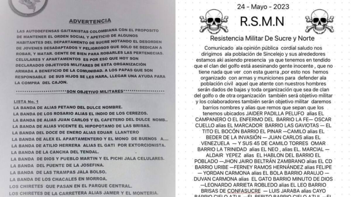 A los crímenes a balazos que a diario se registran y que ya elevan a 143 la cifra de fallecidos, todos hombres, en lo que va corrido de este año, se suma la proliferación de panfletos amenazantes a nombre de las AGC y de Resistencia Militar de Sucre y Norte, que dan cuenta de una ‘limpieza social’.