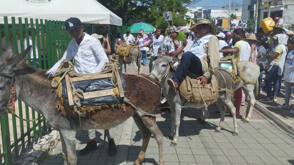Tras más de cuatro horas de camino los pobladores de esas zonas llegaron a pie y en burros con pancartas y pimpinas vacías, reclamando por el servicio de agua potable que no tienen y que los obliga a tomar de la que hay en pozos donde los animales hacen lo mismo, y peor, se meten en estos.