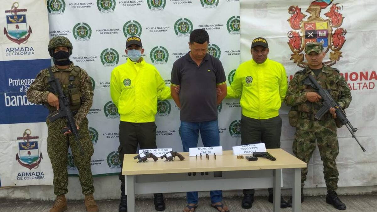 Fuentes judiciales informaron que 'a este sujeto se le hallaron en su poder dos armas de fuego tipo revólver, un arma de fuego tipo pistola traumática, 10 cartuchos calibre 38 milímetros, y ocho cartuchos de arma traumática. Elementos que no contaban con la documentación requerida y que según la investigación, serían utilizados para cometer hechos ilícitos en el Departamento de Sucre, motivo por el cual fue capturado y dejado a disposición de la autoridad competente'.