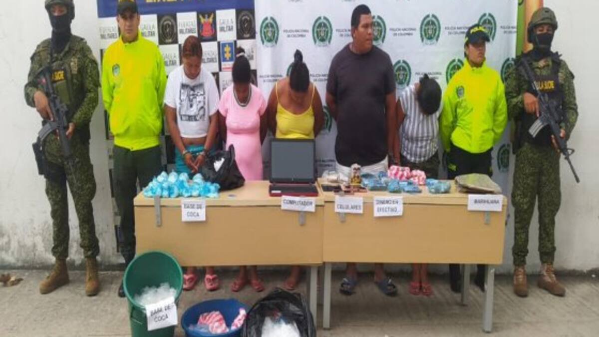 Además, en el lugar de las capturas fueron incautados 504 gramos de marihuana, 2,8 kilogramos de pasta base de coca, una báscula electrónica, un computador, cuatro celulares y dinero en efectivo al parecer producto de la venta ilícita de los estupefacientes.