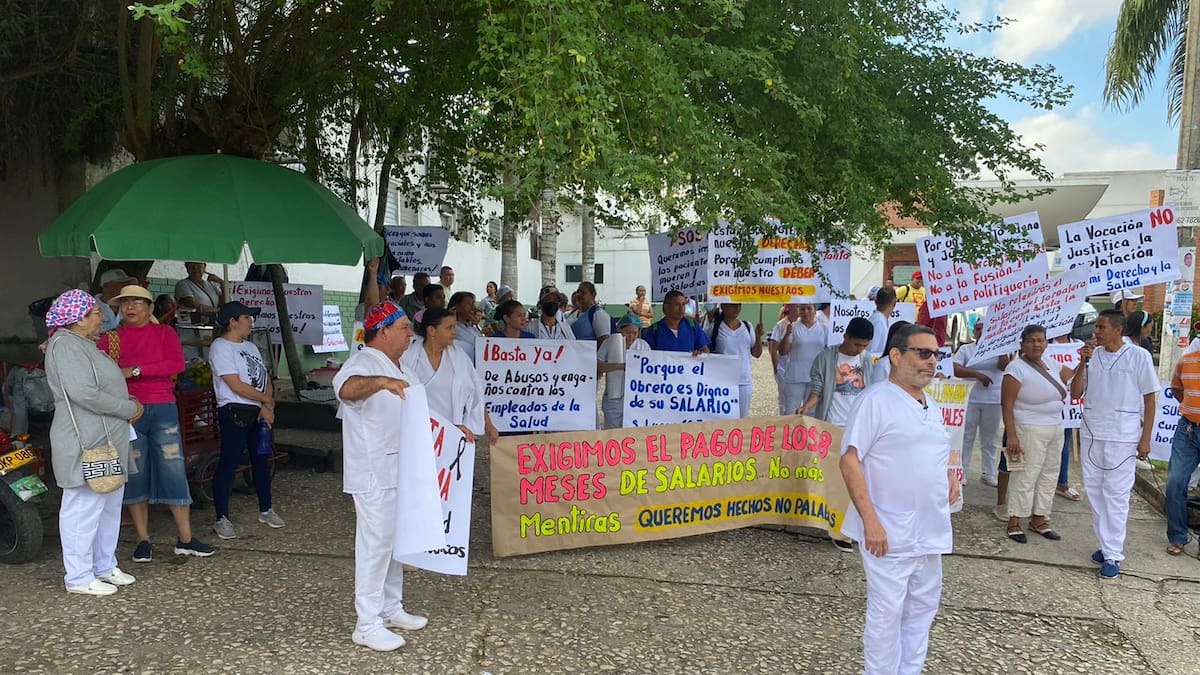 El personal que labora en el Hospital Regional Segundo Nivel Nuestra Señora de Las Mercedes, en Corozal, decidió salir a las calles, y más a esta de paso nacional, para exteriorizar una vez más su voz de rechazo porque no les han pagado los salarios atrasados que oscilan entre los 8 y los 3 meses.