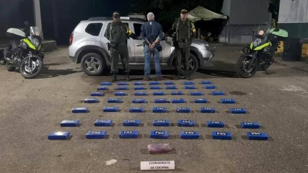 A la altura del kilómetro 62 de la ruta 9005 vía San Onofre-Cartagena los uniformados se incautaron del clorhidrato de cocaína que transportaba un hombre en una camioneta y quien al ver a los policías se mostró muy nervioso por lo que procedieron al registro exhaustivo del vehículo y hallaron en una caleta, debajo de una de las sillas, los 50 paquetes rectangulares con el estupefaciente.