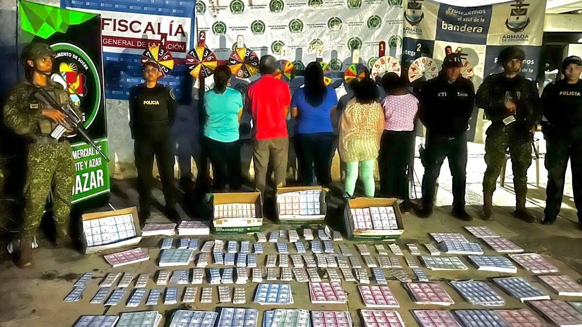 Cinco ciudadanos, entre ellos cuatro mujeres, fueron capturados por personal de la Policía Nacional, CTI de la Fiscalía y Gaula Militar en un operativo contra el comercio de rifas y juegos de suerte y azar ilegal.