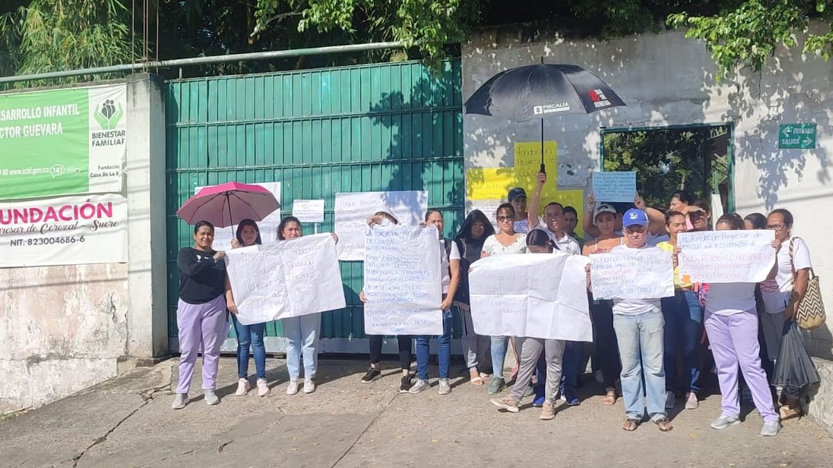 Los trabajadores del Centro de Desarrollo Infantil (CID) Padre Víctor Guevara, que opera en la Avenida San Carlos de la ciudad de Sincelejo, completan dos días de protestas en las afueras de la dirección del Icbf en Sucre y en la de su sitio de labores, en señal de rechazo a los malos manejos de su operador.