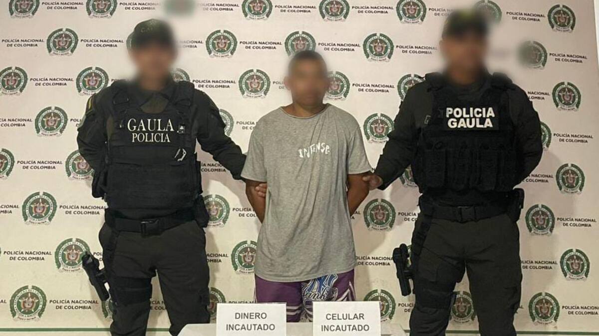 En la Avenida Las Peñitas, de Sincelejo, las unidades del Gaula de la Policía Nacional aprehendieron a Léider Enrique González Arrieta, alias Pitufo, cuando recibía dinero producto de una extorsión.