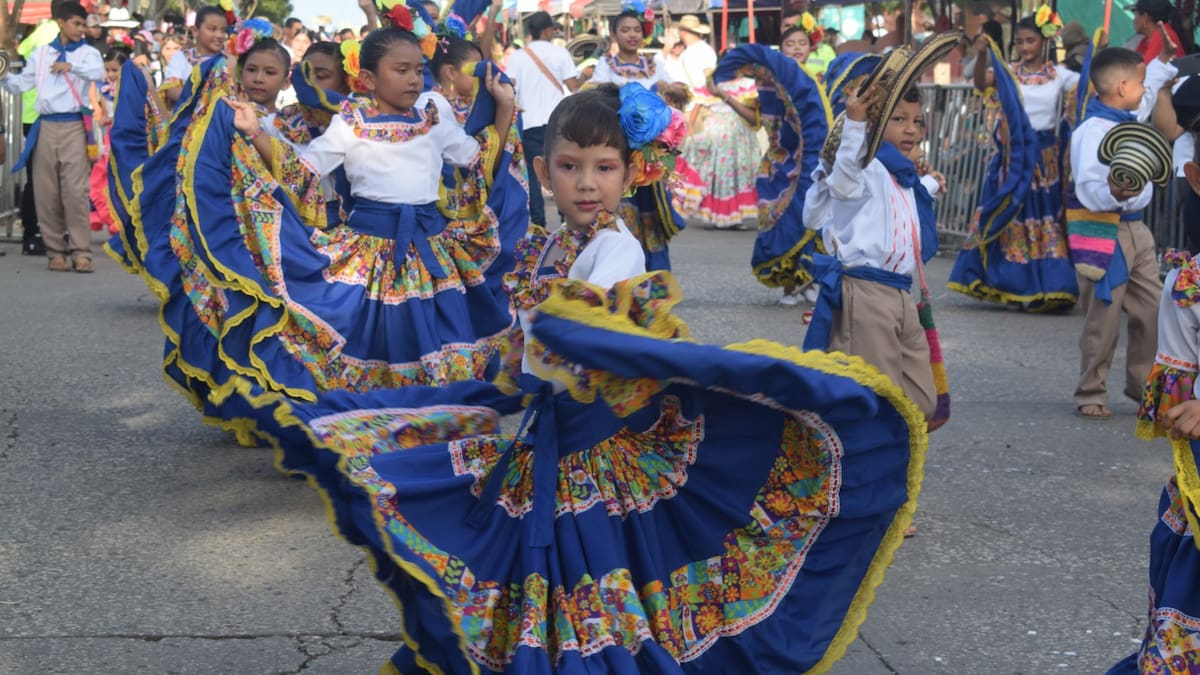 Unos 1.500 niños y niñas que integraron 45 comparsas, en diversas modalidades, desfilaron al son de porros, fandangos y otros ritmos por las avenidas Ocala y Luis Carlos Galán hasta llegar a la emblemática Plaza de Majagual, al tiempo que otros lo hicieron montando sus caballitos de palo y en compañía de adultos.