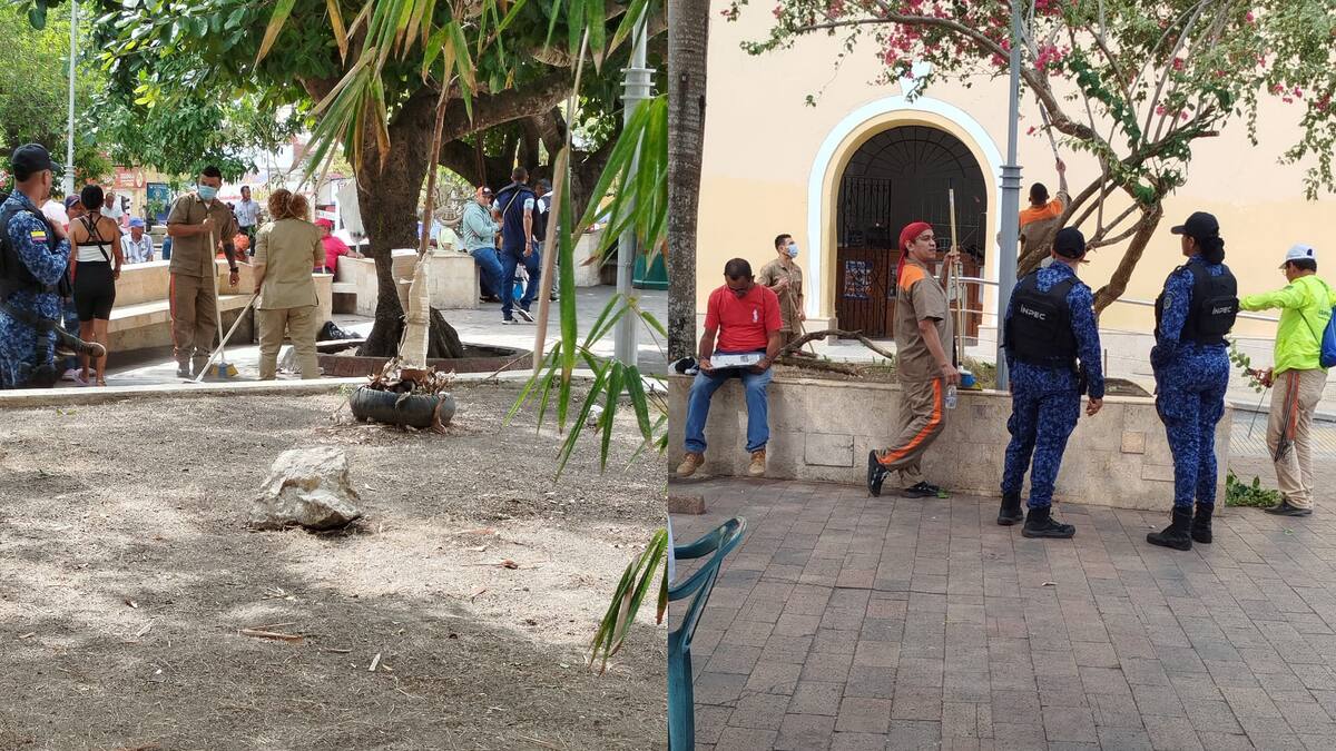 Once internos de la Cárcel La Vega, en Sincelejo, entre ellos algunas mujeres, abandonaron por unas horas el penal para realizar labores de limpieza en el Parque Santander, zona céntrica de la capital sucreña.