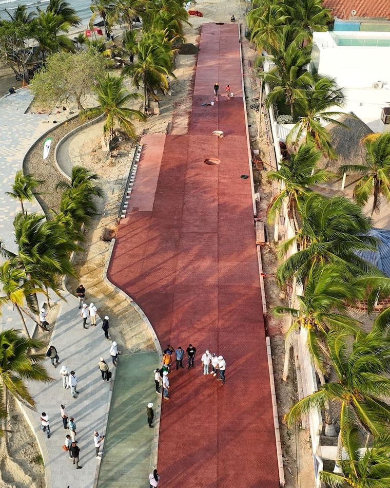 La gobernadora de Sucre, Lucy García Montes, y la alcaldesa de Coveñas, Nestky Feria Moreno, con sus equipos de trabajo de infraestructura recorrieron la obra y constataron que hasta el momento han completado varias fases preliminares, entre ellas el trazado y replanteo, excavaciones, hincado de pilotes de cimentación, instalación de redes de alcantarillado y acueducto, y la fundida de pavimento estampado en diversas zonas, lo que asegura un avance sólido y progresivo de la obra de la que muy pronto turistas y locales de Coveñas podrán disfrutar.