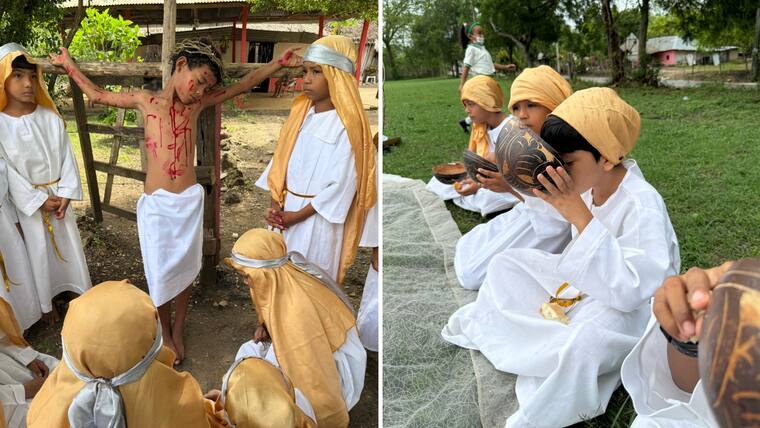 En un ambiente de reflexión los alumnos de la sede Moquén, en la zona rural del municipio de Toluviejo, conmemoraron la institución de la Eucaristía en la última cena del Señor con sus apóstoles.