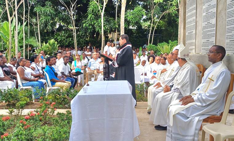 Monseñor José Clavijo Méndez, obispo de la Diócesis de Sincelejo, fue quien lideró la misa en memoria de las víctimas del conflicto en Palo Alto y a su vez bendijo el monumento destacando la buena labor de monseñor Amaury Medina “que por su generosidad dispuso de un rinconcito de su propiedad para hacer memoria”.