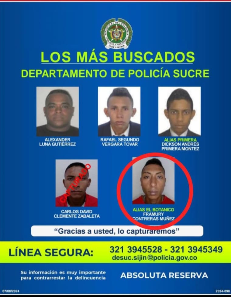 El ‘Botánico’, dice la Policía, “era el encargado de actividades delictivas en los municipios de Corozal, Morroa, Sincé y San Benito Abad. Y este sujeto figuraba en el volante de los más buscados en Sucre por el impacto de sus acciones delictivas en la región”