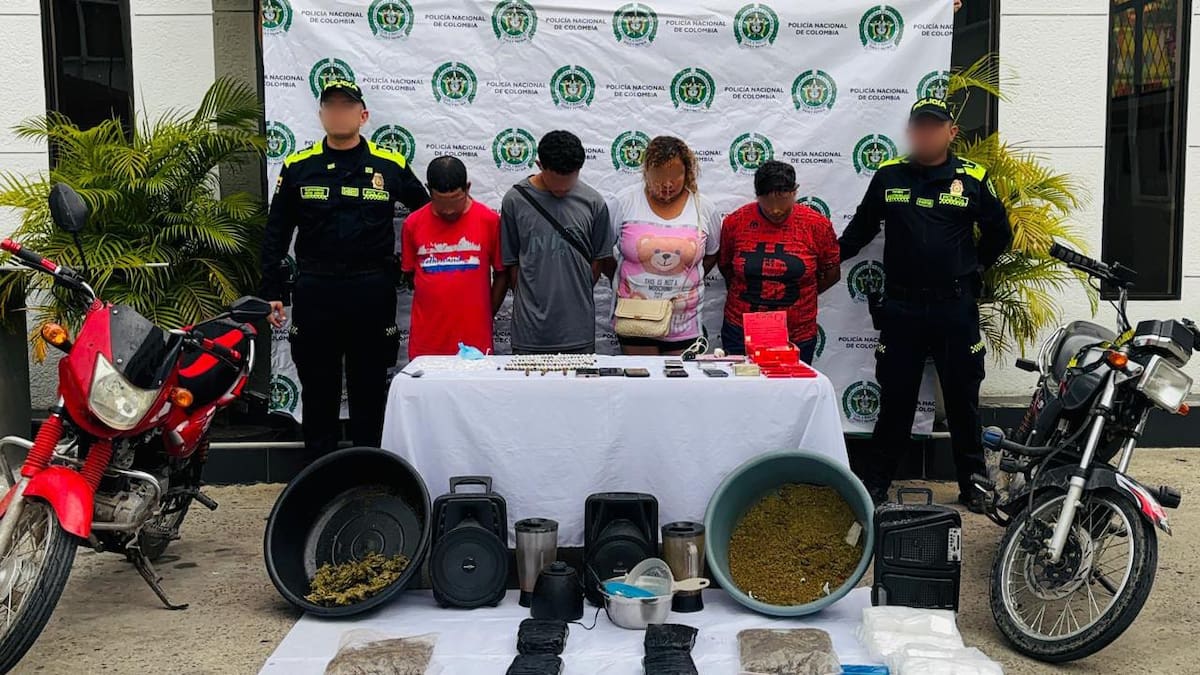 Las detenciones que cobijan a Rayser Raúl Ramírez Padilla, Yeison Manuel Páez Pupo, Alba Garzón Anaya y Yasmín Pupo Caballero, las efectuaron en desarrollo de una diligencia de registro y allanamiento donde también incautaron 5.000 gramos de estupefacientes, correspondientes a aproximadamente 2.600 dosis de marihuana y base de coca; elementos para dosificación, como grameras y licuadoras; 100 cajas preparadoras de cigarrillos; 5 teléfonos celulares; 2 motocicletas y 3 parlantes de sonido funcionales que eran encendidos de manera estratégica cuando utilizaban licuadoras para el procesamiento de las sustancias alucinógenas, con el fin de disfrazar el ruido y evitar ser detectados por las autoridades.