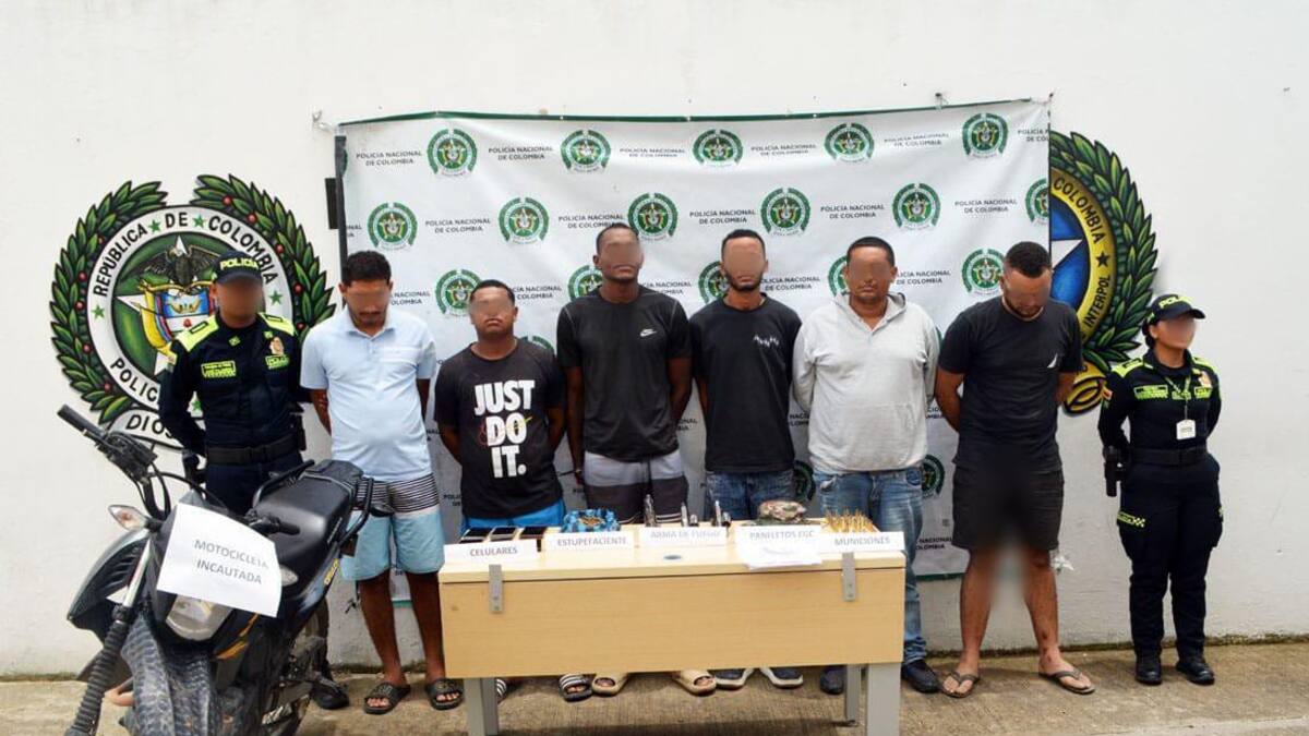 Las detenciones, en flagrancia, fueron realizadas por unidades de la Policía Nacional bajo la coordinación de la Fiscalía General de la Nación, y cobijan a Dany Alexánder Gómez Vásquez, de 24 años; Jhon Fredy Gutiérrez Sierra, alias ‘Agüita’, de 21 años; Jesús David Corrales Yépez, de 24; Omar Yesid Zúñiga Zúñiga de 30; Marcelino Fuentes Narváez, de 47 y Manuel Meza Morelo, alias ‘Nike’, de 30 años.