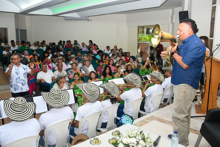 Además de directores de bandas, músicos tradicionales y representantes institucionales, que se gozaron en la mañana de este jueves 30 de octubre un espectáculo lleno de saberes, arte y música a cargo del maestro Ramón Benítez Benítez, reconocido internacionalmente como “El Bombardino de América”, y quien compartió su experiencia, trayectoria e improvisación musical en las bandas tradicionales.