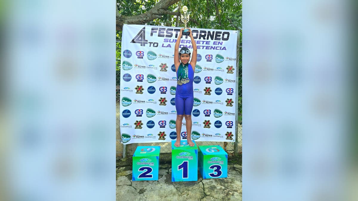 La niña se ganó cuatro medallas de oro en cuatro pruebas: 25 metros mariposa, 25 metros pecho, 25 metros espalda y 50 metros libre sumando un registro importante en este 2025 con 62 medallas.