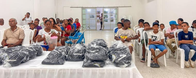 Los niños que hacen parte del semillero de música folclórica de la Casa de la Cultura del municipio de San Onofre recibieron la dotación de uniformes.