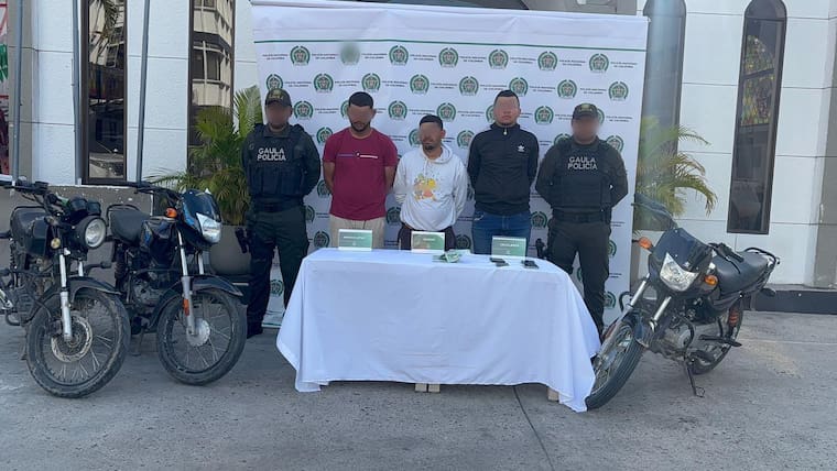 Les incautaron tres motocicletas, cuatro teléfonos y un millón de pesos correspondiente a parte de la cuota extorsiva exigida a una de las víctimas.