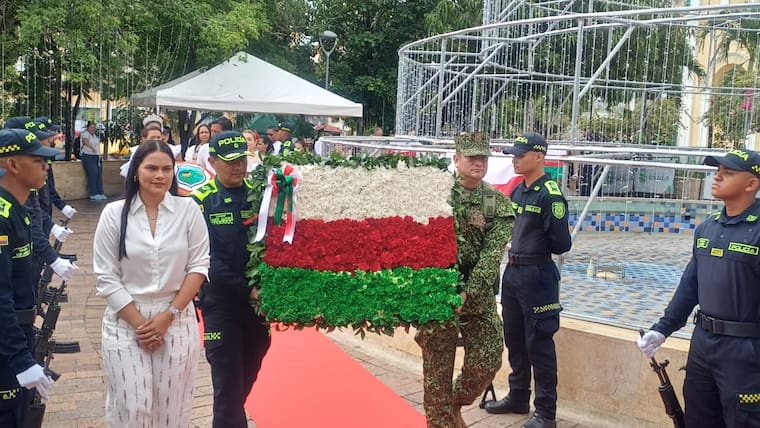 Por su parte la secretaria de gobierno de Sucre, Mileicy Barrios Chávez, al igual que los comandantes de la Policía en Sucre y del Batallón 14 de la Infantería de Marina, elogiaron a la ciudad capital del departamento en sus 250 años durante sus intervenciones en el Parque Santander que se cumplieron después de la colocación de la ofrenda floral a Antonio De la Torre y Miranda, fundador de Sincelejo.