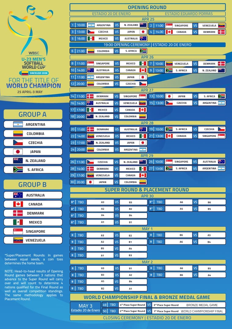 La Copa Mundial de Sóftbol Masculino Sub-23 que se jugará este 2026 en Colombia y que tiene como sede a la ciudad de Sincelejo, ya tiene calendario asignado.
