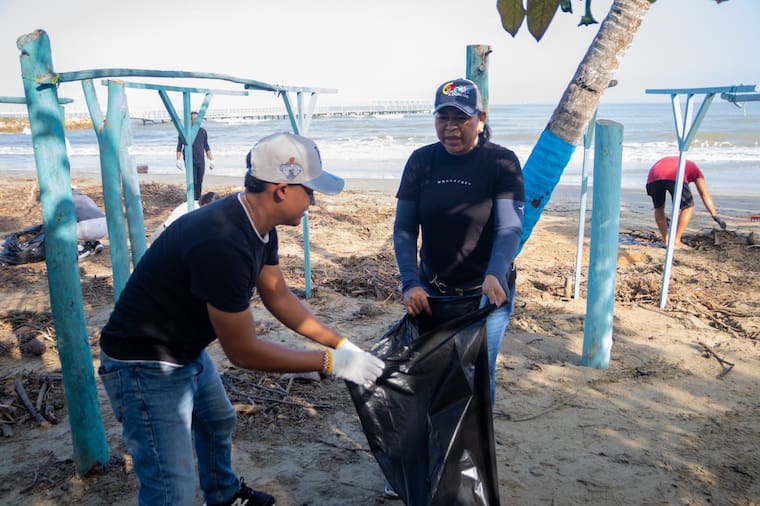 Bajo el liderazgo y la iniciativa de la alcaldesa Nestky Feria iniciaron desde la mañana del miércoles 4 de febrero las labores de limpieza de mar y playa, “que son los activos más importantes que tenemos y que le ofrecemos al mundo”, anota.